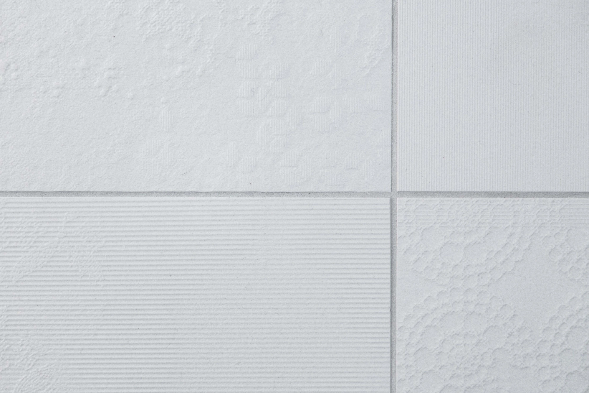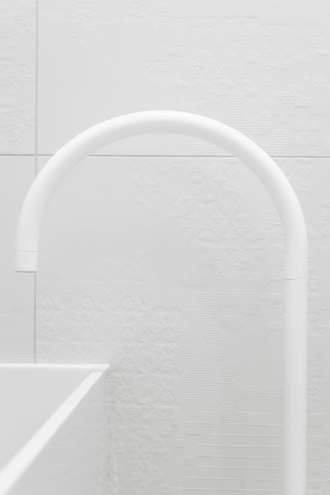 Le lastre utilizzate per la totalità dei rivestimenti nascono da un progetto di Patricia Urquiola per Mutina. I bassorilievi appena percettibili che percorrono elegantemente la superficie non sono mere decorazioni, ma rappresentano ciò che rimane di memorie strappate.