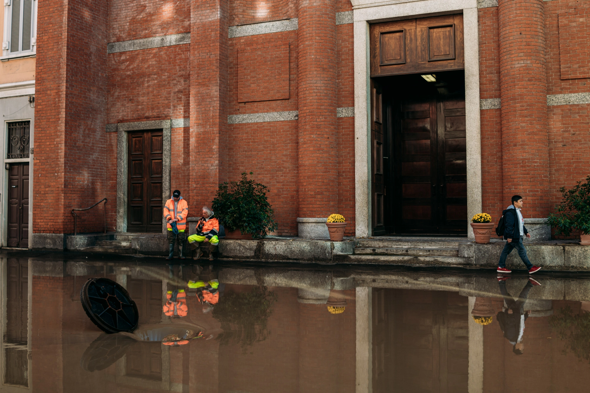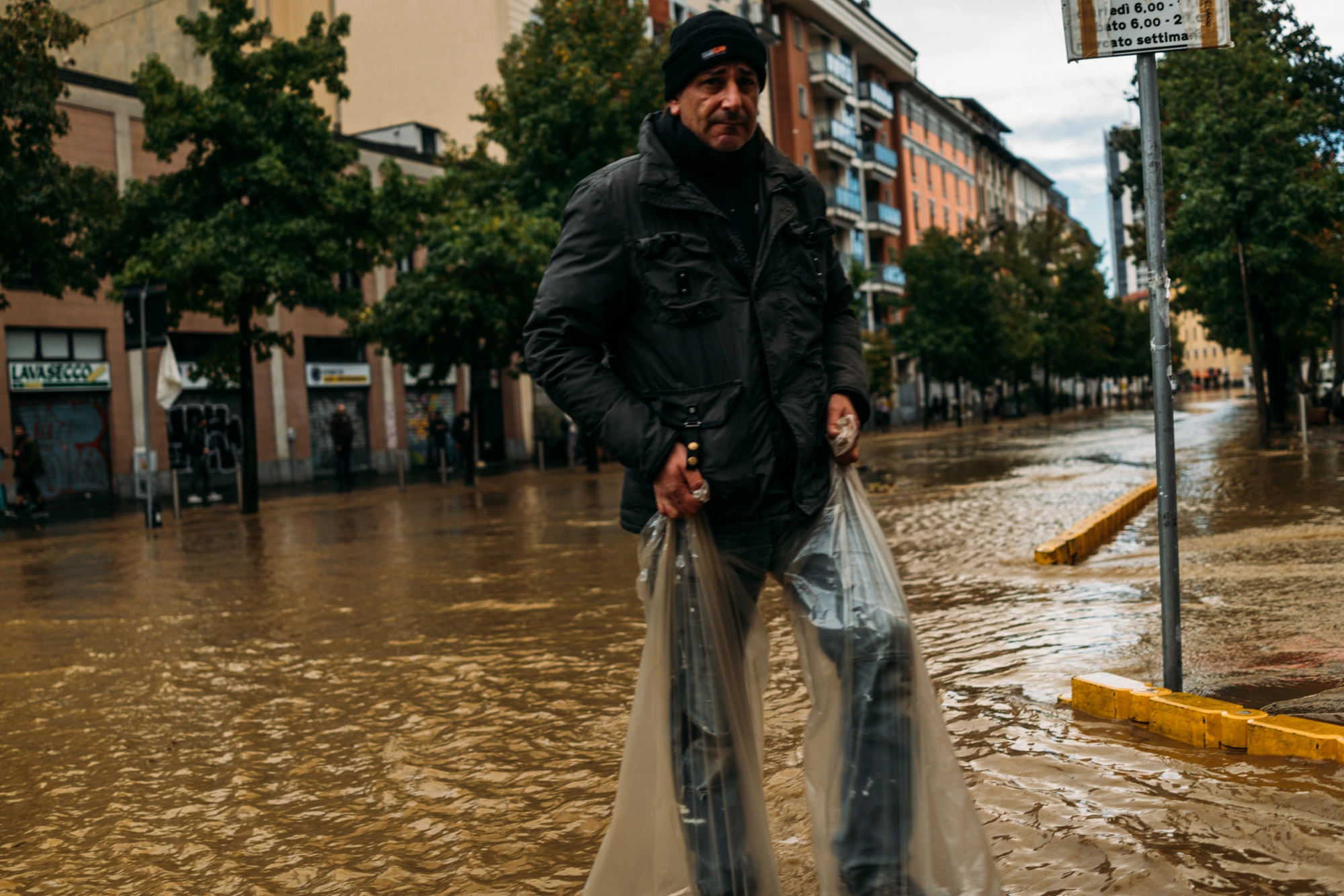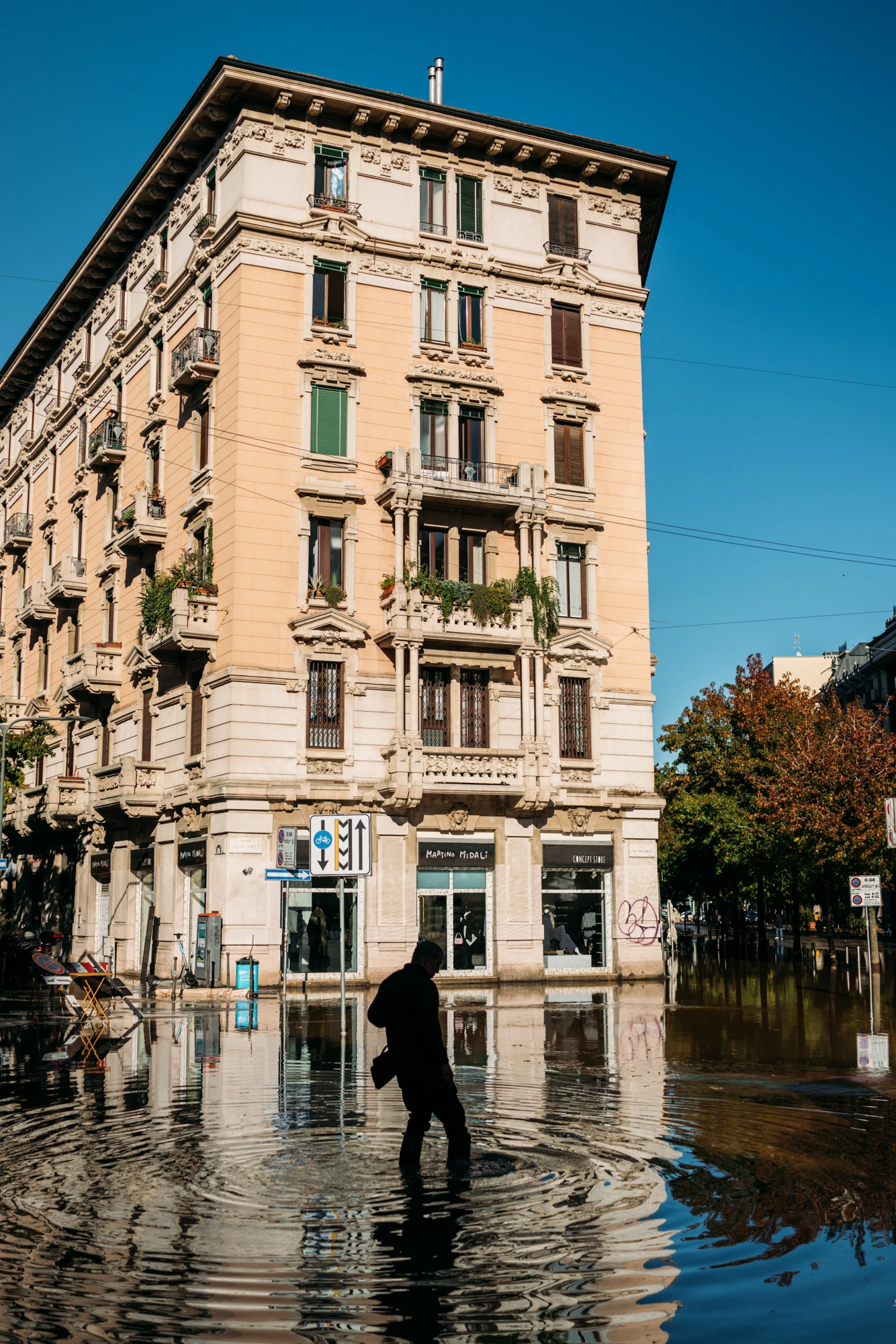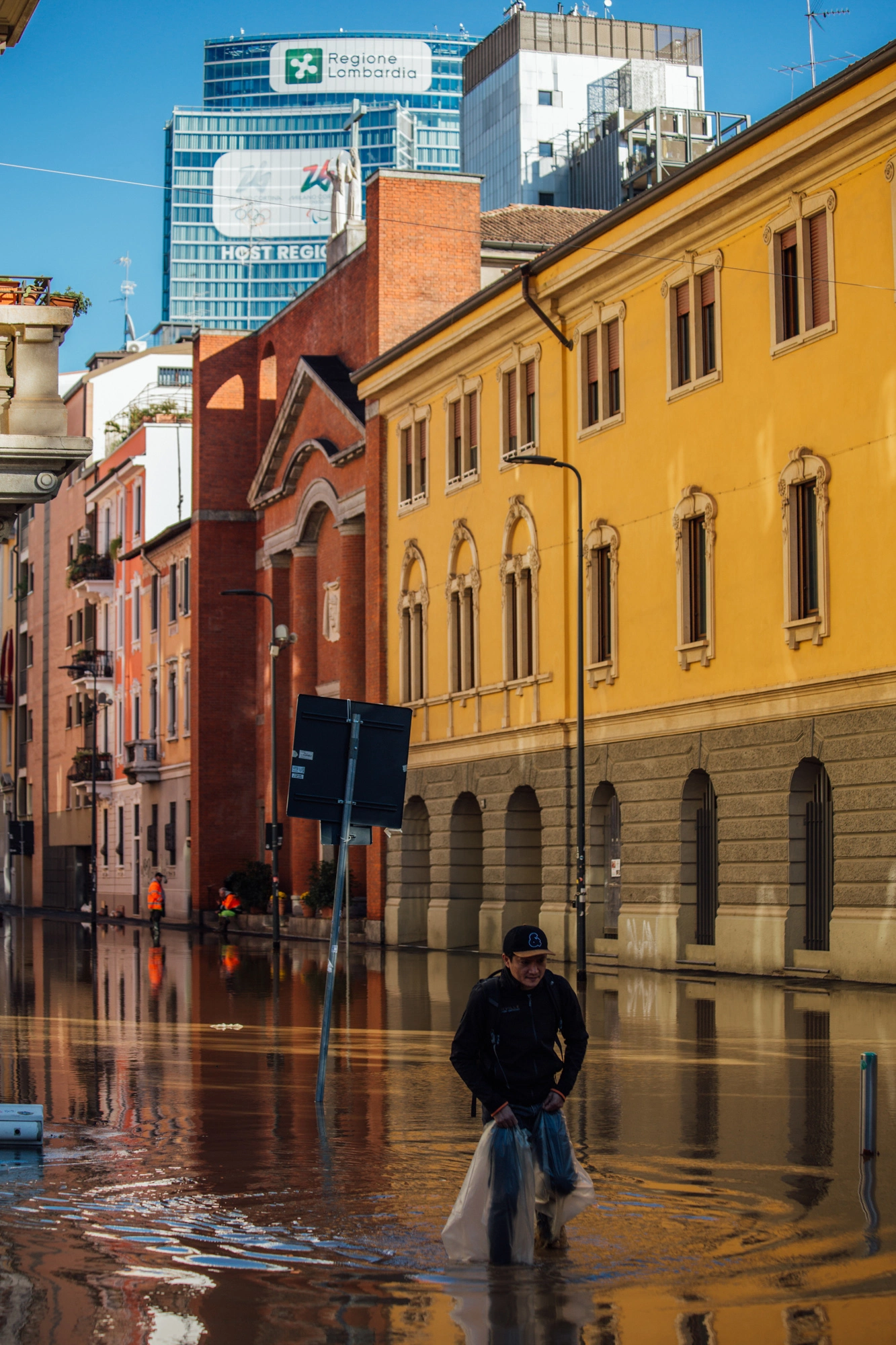 Nell’autunno del 2023, il quartiere di Isola a Milano venne allagato dalle acque del Seveso, ingrossato dalle incessanti piogge di quel periodo. Mi ero trasferito in quella zona da poco e, a differenza degli abitanti del quartiere, non ero preparato alla visione di una Milano con strade trasformate in fiumi e acqua al posto del cemento. Fu il mio gatto, appollaiato sul davanzale con lo sguardo fisso fuori dalla finestra, a segnalarmi l’insolito spettacolo. Mi avvicinai e vidi l’acqua verdastra correre per la strada, cancellando i confini tra carreggiata e marciapiedi e annegando le rotaie del tram.