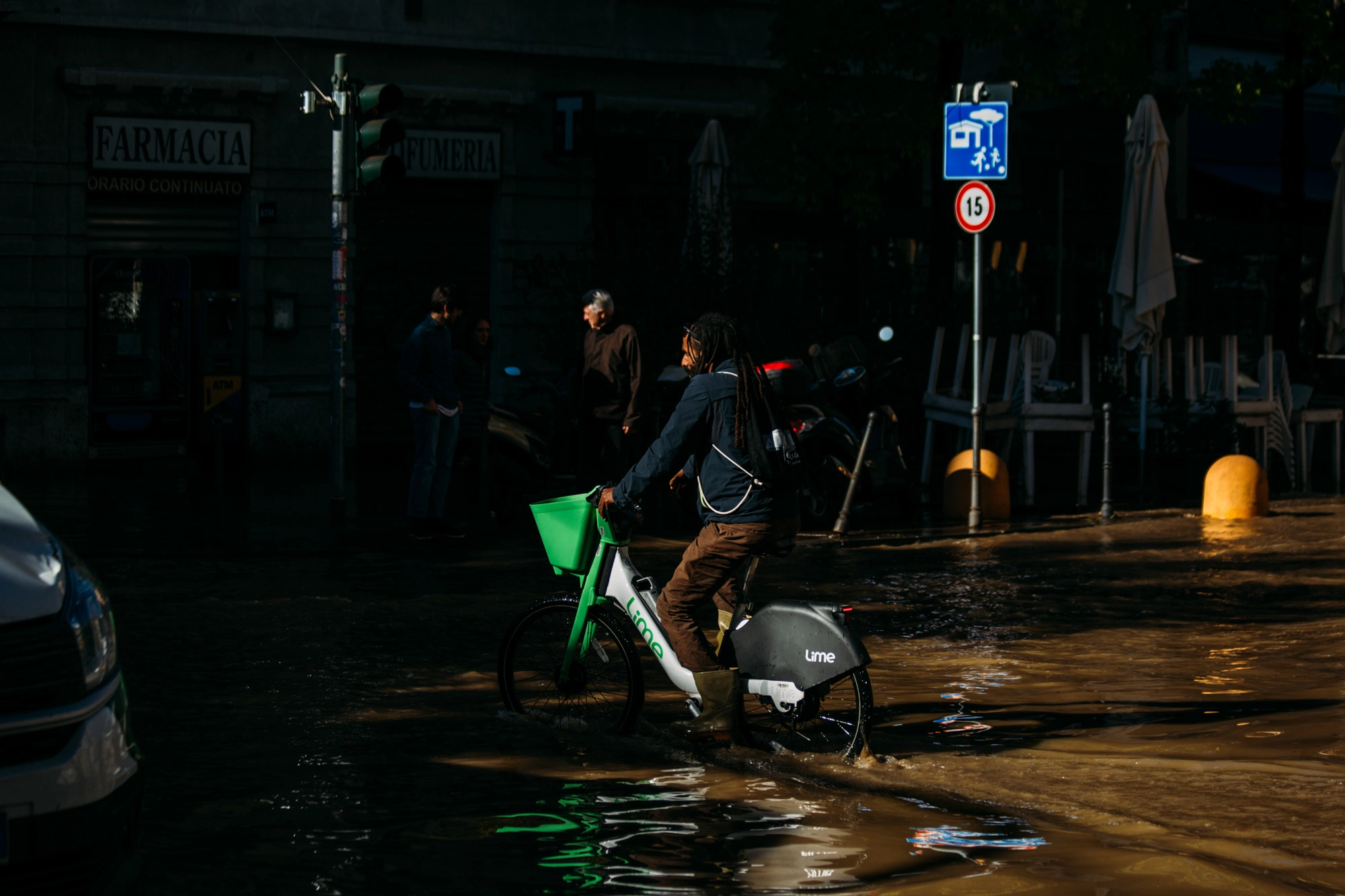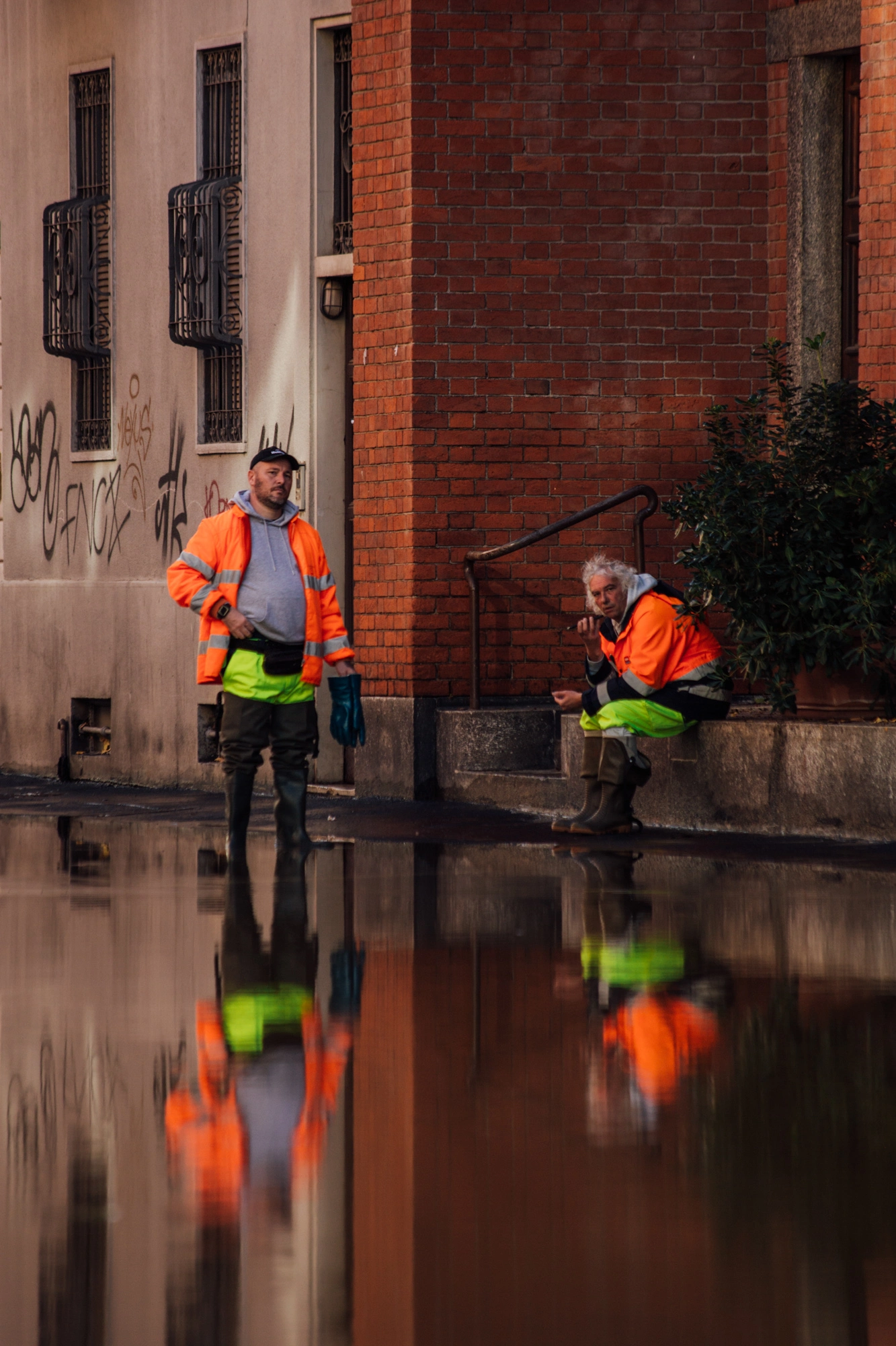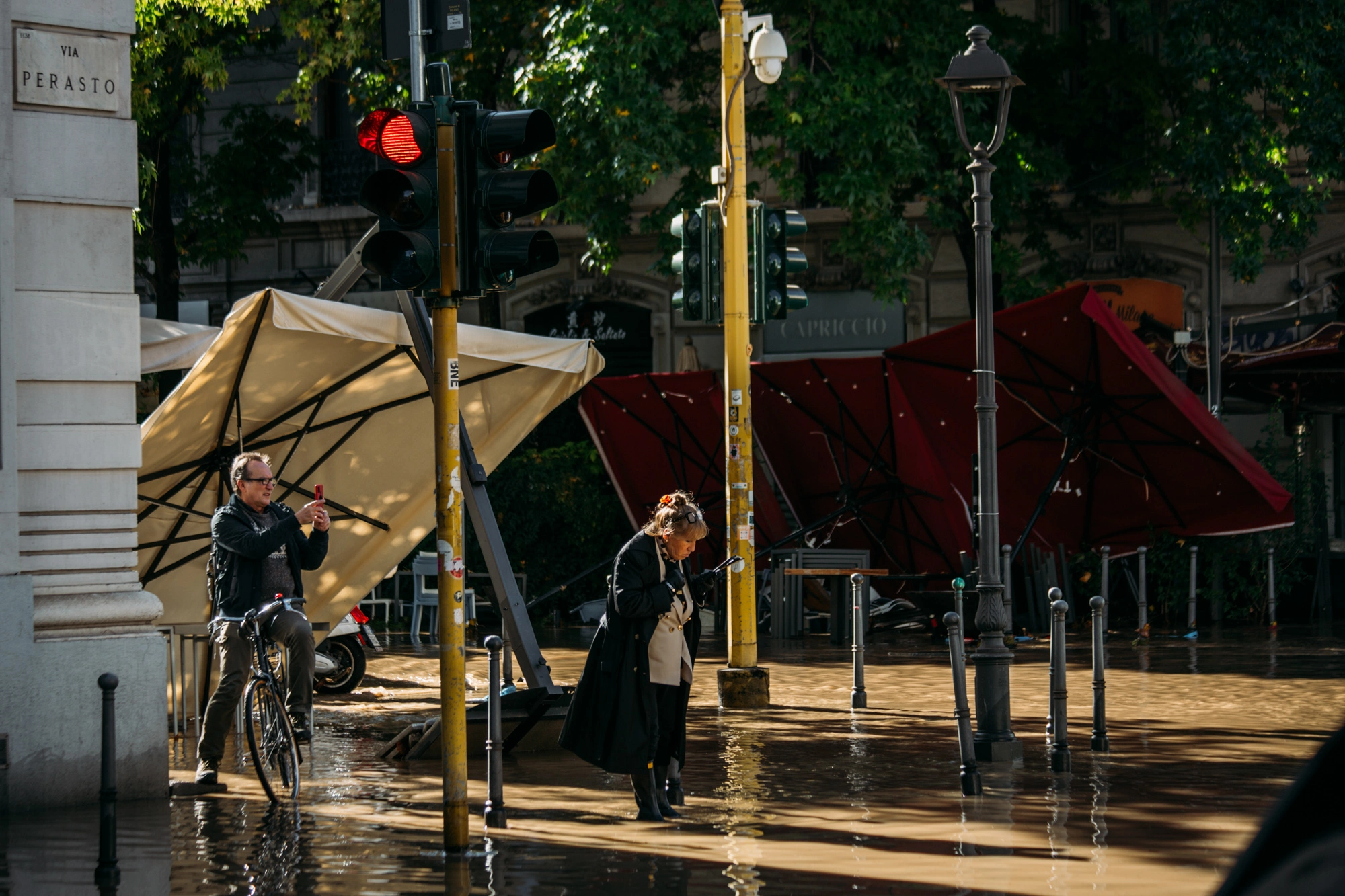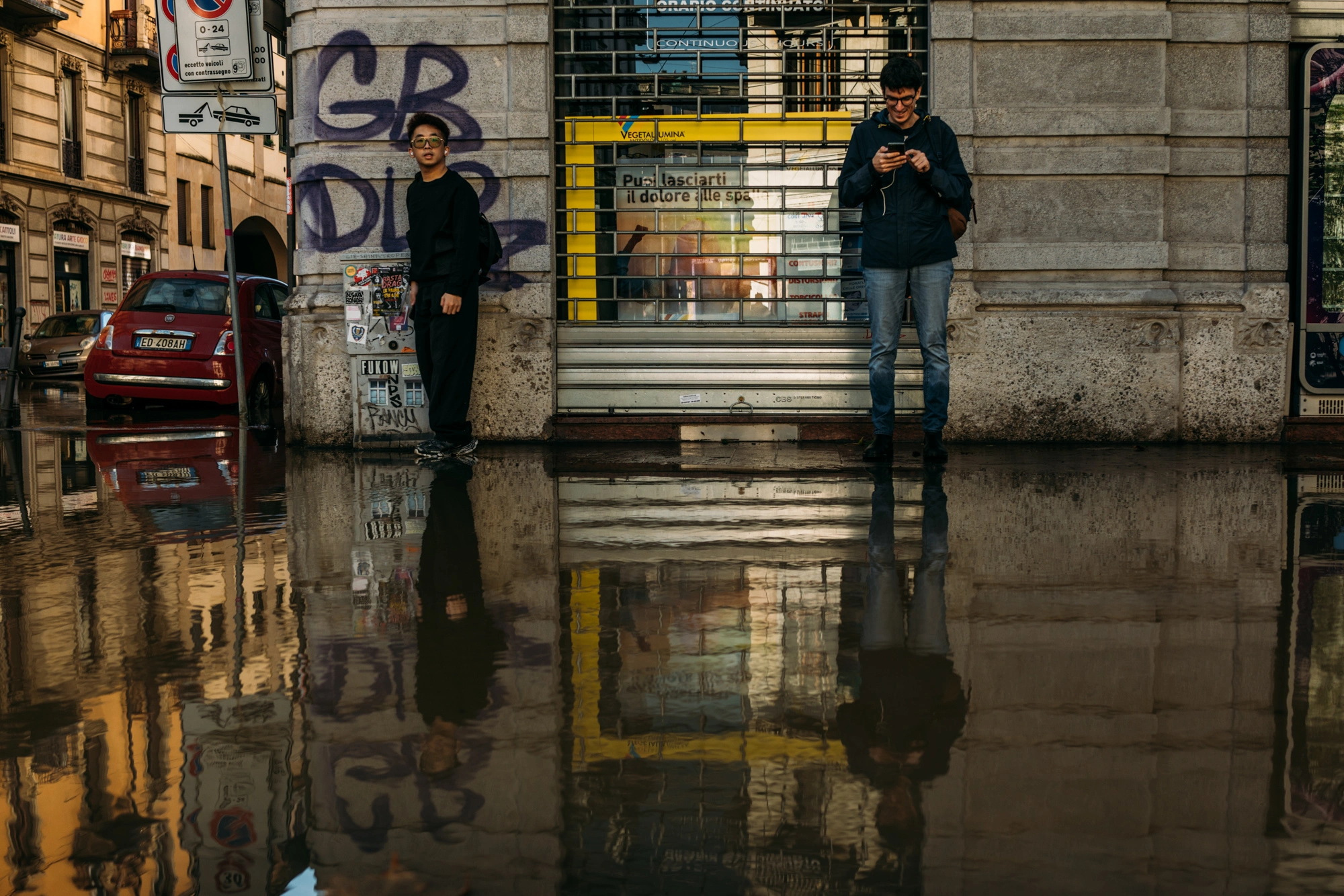 Nell’autunno del 2023, il quartiere di Isola a Milano venne allagato dalle acque del Seveso, ingrossato dalle incessanti piogge di quel periodo. Mi ero trasferito in quella zona da poco e, a differenza degli abitanti del quartiere, non ero preparato alla visione di una Milano con strade trasformate in fiumi e acqua al posto del cemento. Fu il mio gatto, appollaiato sul davanzale con lo sguardo fisso fuori dalla finestra, a segnalarmi l’insolito spettacolo. Mi avvicinai e vidi l’acqua verdastra correre per la strada, cancellando i confini tra carreggiata e marciapiedi e annegando le rotaie del tram.
