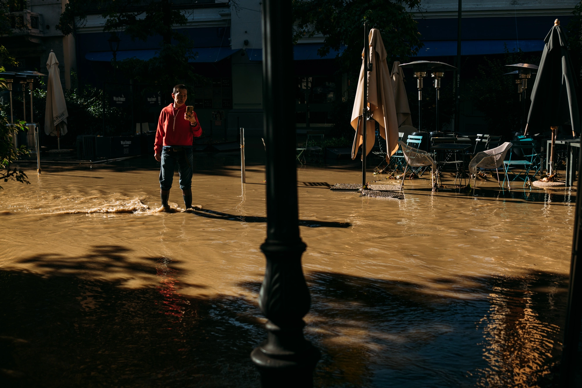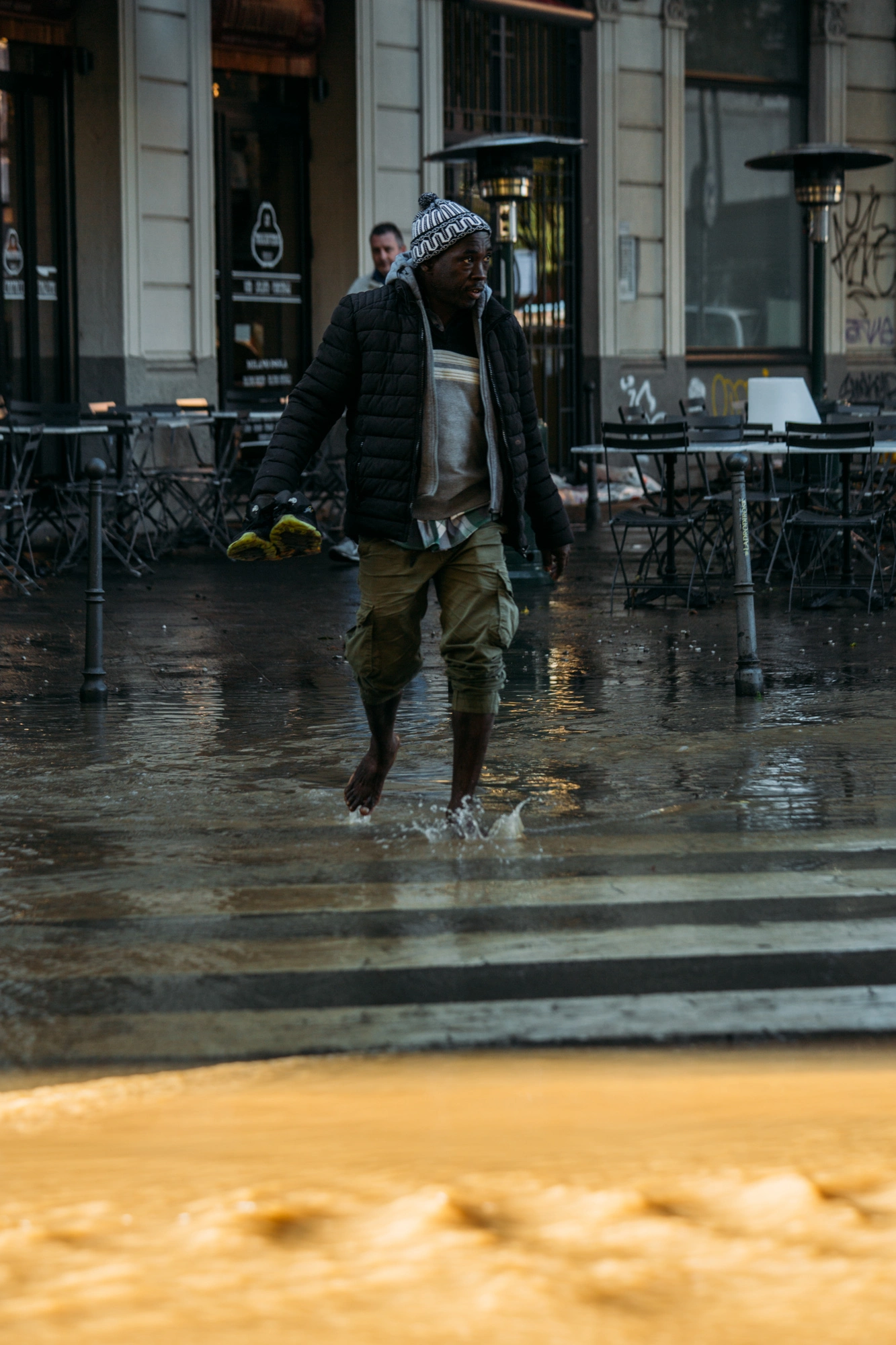 Ho voluto raccontare quella giornata di disagi, problemi e paradossi. Ristoranti allagati accanto a barricate di sacchi di sabbia. Gambe avvolte nella plastica per attraversare l’acqua sporca e, nello stesso tempo, persone rilassate sulle panchine con i piedi a mollo.